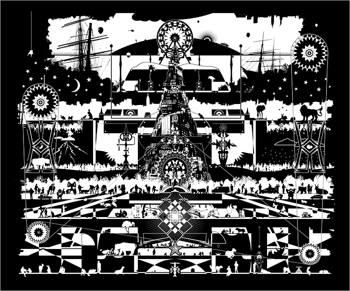 2013 pigment-based inkjet print on synthetic fiber cloth, synthetic resin, wood panel 37×72×1inches (93.7×182.5×2.5cm)